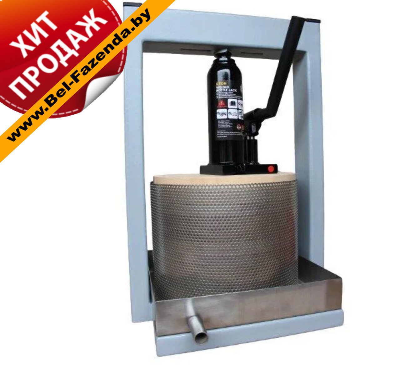 На прессе установлен домкрат 5т. Такой домкрат с легкостью поднимает грузовую Газель! Вы выжимаете из плодов все до последней капли. Повторный отжим не требуется. Домкрат выжимает весь сок без потерь.